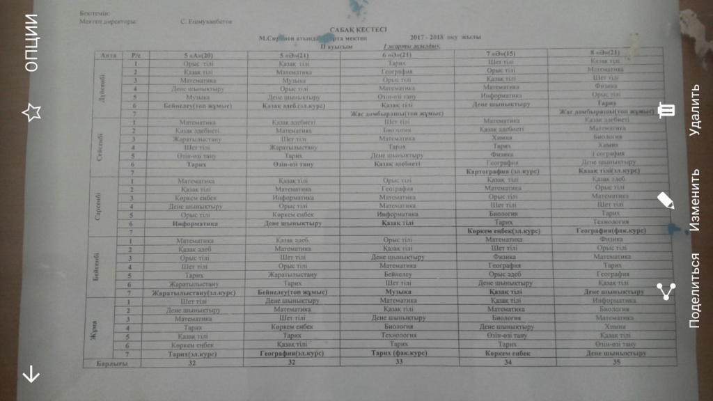 Сабақ кестесі